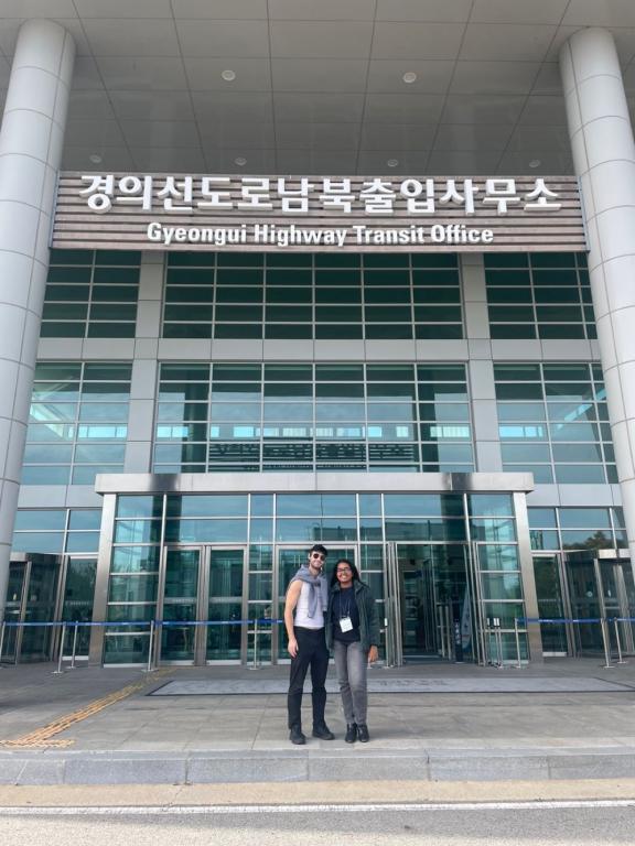 On Friday, October 6th, IRM interns Vaishnavi Pallapothu and Nicholas Kemble had the chance to visit the Demilitarized Zone (DMZ) near Paju-si, South Korea, through a tour organized for GCF colleagues by the Ministry of Unification Uni+Center Incheon. The DMZ was established in 1953 after the Armistice Agreement that brought the ceasefire to the Korean War, where both parties agreed to move their troops back by 2km into their respective territories to create a neutral buffer zone. The DMZ splits the Korean peninsula roughly into two halves and is 250km long and 4km wide.