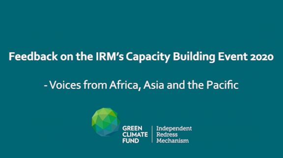 En septembre et octobre 2020, le MRI a proposé une formation en ligne au personnel des mécanismes de réglement des plaintes (MRP) des entités à accès direct (EAD) du Fonds vert pour le climat (GCF) situées en Afrique, en Asie et dans le Pacifique. Lors d'un entretien avec le MRI, certains participants ont partagé leurs points de vue sur l'importance du redressement des griefs et de la responsabilité.